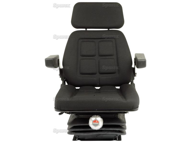 Specifications: Mechanical Adjustable Suspension Seat Weight adjustment (manual): Max – 150kg Mechanical Suspension Suspension stroke: 50mm Slide travel: 210mm Seat width: 480mm Material: Black cloth Backrest Extension Backrest Tilt Fold up Armrests Seat Belt Fixing Points Replacement Armrests: S.71648